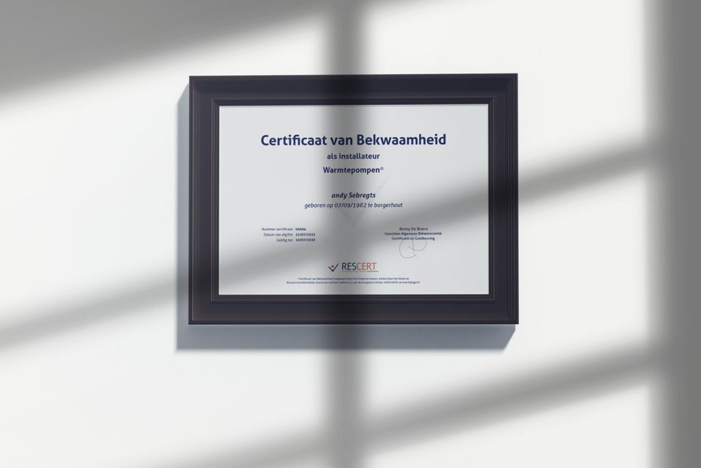 Als gecertificeerde aircoplaatser garanderen we u steeds een betrouwbare en kwaliteitsvolle installatie. Het RESCert-certificaat is een certificaat dat uitgegeven wordt door het Vlaams, Waals en Brussels Hoofdstedelijk Gewest aan installateurs die de gekozen technische opleiding succesvol afgerond hebben. Een opleiding waarvoor ook wij met glans sloegen!